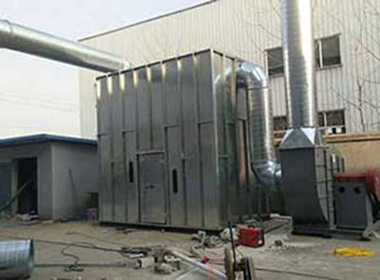 在車間各揚塵點采用吸罩通過吸塵管道進入布袋除塵器,后通過布袋再次收集,經(jīng)過過濾后的凈化氣體通過風機排出。
