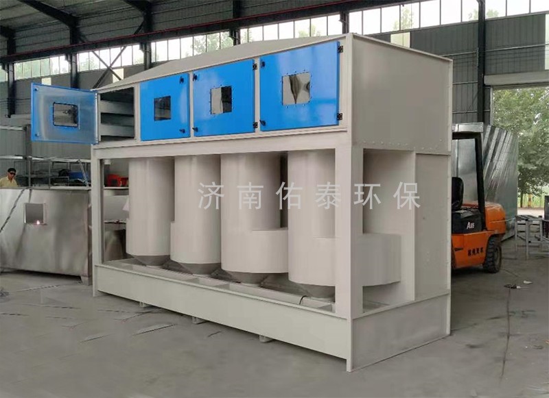 噴槍中噴出的水性漆,絕大部分附著在所噴工件表面,還有一小部分飄散在空氣中,處理VOCs之前必須將漆霧顆粒處理干凈,若漆霧顆粒吸附到活性炭表面,會導(dǎo)致系統(tǒng)運(yùn)行不暢,活性炭吸附性能降低,及活性炭使用壽命變短等問題。