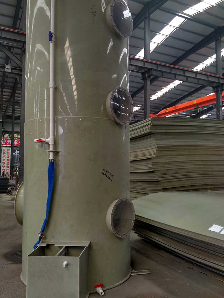 1.5萬風量酸霧凈化塔規(guī)格為:ф1.8m*H4.0m*10mm。進、出風口直徑均為600mm。循環(huán)水量每小時22立方。每小時處理廢氣量16800立方。凈化塔整體厚度為10mm PP板。