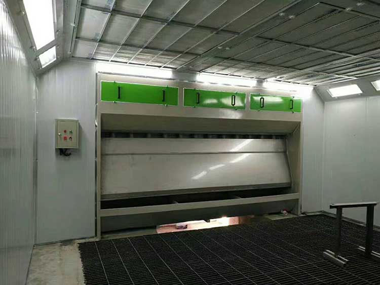 ? 噴漆室:噴漆時具備通風、照明、空氣凈化的功能。噴漆室采用上部送風,側部排風的漆霧處理結構。漆霧處理設備為干式噴漆柜和噴漆水簾柜兩種類型。