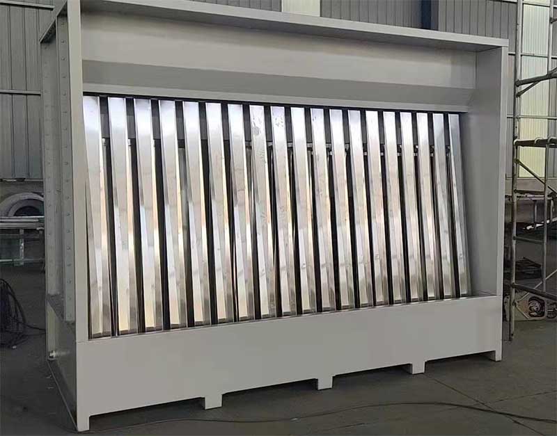 噴漆作業區有害物質的排放是否達標,影響捕獲效果的因素有兩方面:一是使用的捕獲介質;二是進入漆霧凈化的氣流速度。使用的捕獲介質不同,凈化處理的效果也不一樣。常用的捕獲介質有兩類,一類是固體纖維類,第二類是液體類。前者主要使用在干式噴漆臺上,工作時是將漆霧截附于纖維上,日常運行費用較高,且固體纖維對有害氣體沒辦法吸收。后一類是通過混合包容作用來達到凈化目的,主要有水和礦物油。使用水的設備主要是無泵水簾柜,水旋噴漆柜,水簾柜噴漆臺。通過對照后發現,以礦物油作為漆霧處理介質具有如下優點: